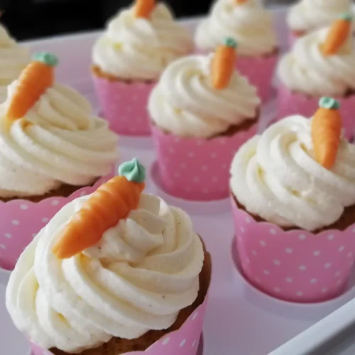Saftige Rüebli-Cupcakes mit Orangenblüten-Frosting